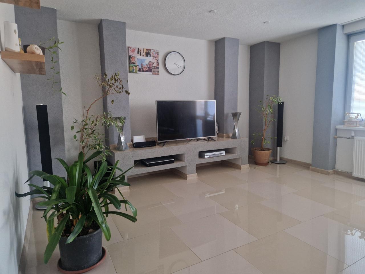 - 2 samostatné byty s výmerou 82 m2 so vstupnou halou, priestrannou obývacou izbou s veľkou loggiou, kuchyňa so špajzou na druhom poschodí v 4 izbovom byte a jedna zo spální oboch bytov má balkón do záhrady,